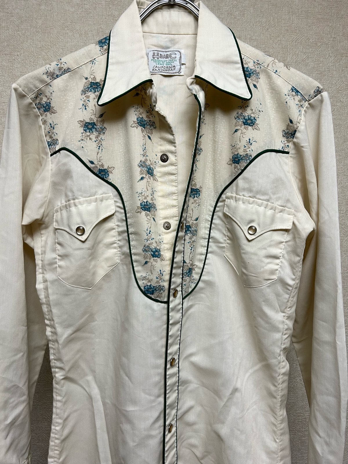 | 商品の特徴 | セブンティーズU.S.A.製H BAR C〉70年代U.S.A.製H BAR C希少パイピン。hq720.jpg?sqp=-。fit=scale-down,w=1200。ウエスタンシャツで有名なHbarCのビンテージセットアップです。肩幅 41cm身幅 48cm袖丈 61cm着丈 77cmウエスト 40cmヒップ 47cmわたり 26cm股上 31cm股下 70cmvintage ヴィンテージ 古着 old 90s 80s 東洋、JOE MaCOY、バズリクソンズ、シュガーケーン、リアルマッコイズ、ヘラーズカフェ、cushman、インパクティスケリー、ball park、PAYDAY BIGMAC FOREMOST OXHIDE MONTGOMERYWARD PIONEER PowrHouse CAN'T BUST'EM Carhartt HEADLIGHT KEY carter's BIGYANK CROWN DUCKHEAD OSHKOSH sweetorr BENDAVIS TEST STIFEL オーバーオール カバーオール、大戦、ヴィンテージ、デニムヴィンテージ パウエル オールドスクール エラ サンタクルズ スラッシャー vans 霜降り 染み込み 501xx ツートン 後付け フルジップ ダブルフェイス ドラポケ セパポケ パチポケ 80s 70s 90s 60s 50s usn usma usmc usafa usaf usarmy ma1 レーヨン プリントコーデュロイ プリントコーズ levis lee wrangler pennys towncraft montgomeryward sears 風車 筆記体 単タグ 紺タグ トリコタグ プロタグ ランタグ 刺繍 チェーンステッチ チャックテイラー 当て布 ボックス エアジョーダン エアマックス sb ジャックパーセル 古着 格安 激安 鬼ヒゲ ヴィンテージジーンズ 557 506 507 70505 517 646 519 68ウエスタンシャツ ギャバシャツ ギャバジンジャケット ギャバジャンロカビリー ウエスタン ヒッピー サイケデリック サンローラントーガ。楽天市場】h bar c ウエスタンの通販。写真8-9枚目のようにジャケットは首元に小さなほつれ、パンツは左ボタンが欠けていますが、それ以外は目立ったダメージはありません。【ミルク】1tuck straight pants lapiis | ||