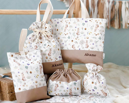 ハンドメイドレッスンバッグ 他 【3点セット】入園・入学セット♡うさちゃん&お花 cdabedc1860a97926f283e898a1660