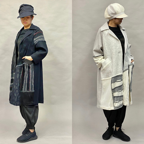 - レディース > ジャケット・アウター > YoshiYoshibypj】アシンメトリー異素材ドッキングロングコート SALE 秋 冬 コート レディース アウター アシンメトリー異素材