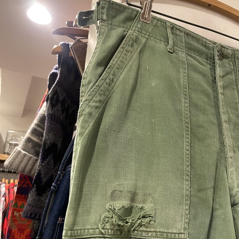 | 商品の特徴 | 60s us army サイドアジャスター ベイカーパンツ 最初期 60s 最初期型。1960s US.ARMY コットンベイカーパンツ アジャスター付き 表記SMALL。60s初期実物OG107ベイカーパンツサイドアジャスター付Xラージ表記平。初期型の特徴であるアジャスター付きで最近は60sは見なくなってきました。40s ファイヤーマンパンツ。2026年最新】60s ベイカーパンツ サイドアジャスターの人気アイテム。- 色: オリーブグリーン- スタイル: カーゴパンツ- ポケット: バックポケット付き- デザイン: ストレートレッグ-サイズ: 平置き ウエスト42cm 股上35cm 総丈100cmご覧いただきありがとうございます。 | ||