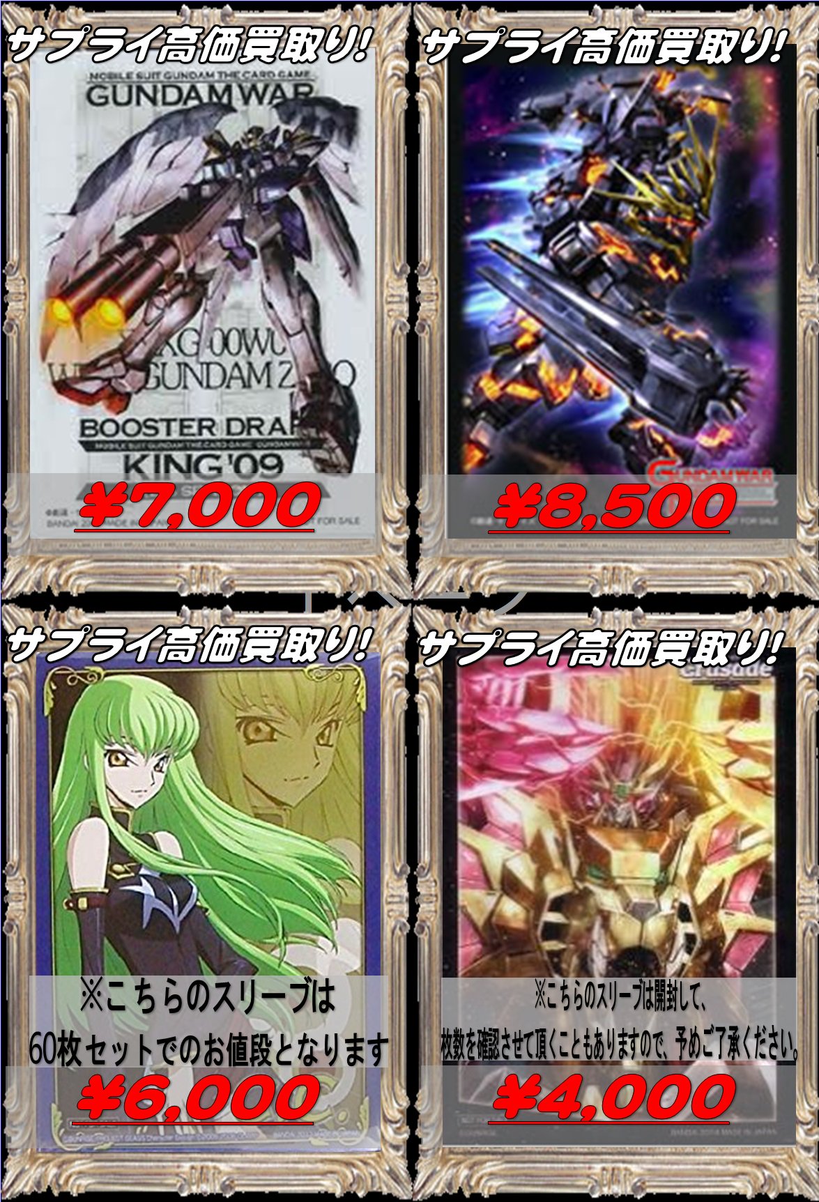 - トレーディングカード > サプライ・アクセサリ・グッズ > ウイングガンダムゼロカスタム スリーブ ガンダムウォー 大会優勝景品 60枚 ウイングガンダムゼロカスタム スリーブ ガンダムウォー 大会優勝景品