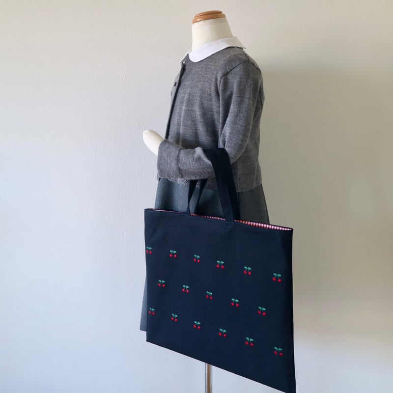 - ベビー・キッズ > 手提げ・レッスンバッグ・入園グッズ > トマト様オーダーページ ハンドメイド レッスンバック Navy label・レッスンバッグ・紺*さくらんぼ(赤)刺繍 | Coco chic