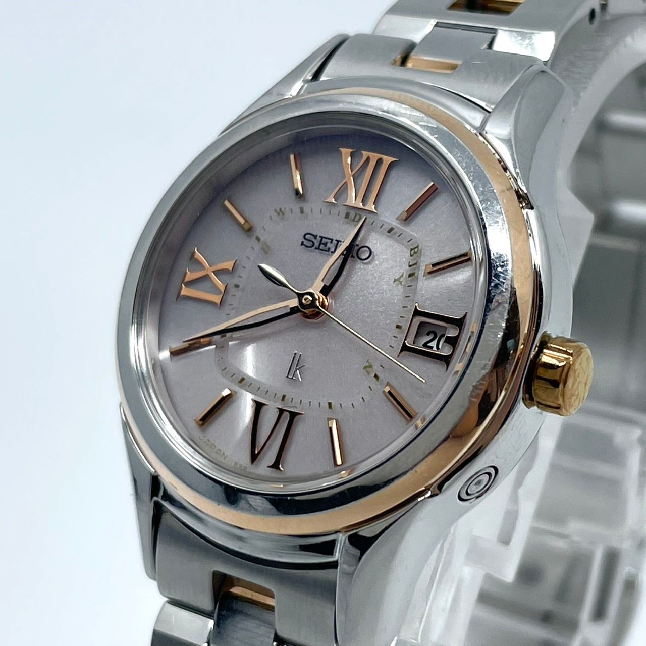 | 商品の特徴 | 腕時計 SEIKO セイコー LUKIA ルキア 1B22-0CR0電波ソーラー 希少。希少】SEIKO ルキア 1B22-0CR0 電波ソーラー コンビ - メルカリ。希少】SEIKO ルキア 1B22-0CR0 電波ソーラー コンビ - メルカリ。❤︎アイテム❤︎美品✨SEIKO LUKIA 1B22-0CR0 セイコー ルキア 電波ソーラー 腕時計2020年 クリスマス限定 モデル数量限定2500本SSVW186 定価 71,500円(税込)❤︎商品情報❤︎ホリデーシーズンを彩る、きらびやかなオーナメントをイメージしたスペシャルモデルが登場✨オーナメントから発想を得た、縦流れのデザインが印象的です。きらっと光る金属略字やスワロフスキーが限定らしく華やかで、ひとつひとつ異なる表情を持つダイヤルが手元を彩ります。花のオーナメントをイメージしたデザインが、さりげないポイントです✨文字盤はクリスマスオーナメントにインスパイアされた華やかな輝きが心を弾ませてくれます。インデックス部分には、5石のスワロフスキーが使われています。日本、中国、アメリカ、ドイツの標準電波を自動受信するので、時刻と日付けがいつでも正確。品番SSVW186駆動方式電波ソーラー(1B22)素材:ベルトステンレススチール(ピンクゴールド色めっき/Cリング)風防サファイアガラス(スーパークリア コーティング)文字盤カラーピンクグラデーションベルトカラーシルバー/ピンクゴールドサイズ(縦×横×厚)約33×25.5×8.5mmベルト腕周り約15cm (余りコマ2つ)重さ約45g❤︎商品の状態❤︎目立った傷や汚れなく、コンディション良く綺麗な商品です。リユース品であることをご理解いただいた上でのご購入をお願いいたしますᵕ̈*✴︎購入元✴︎大手リサイクルショップ大手リユースショップ※日本流通自主管理協会加盟店(AACD)他販路でも出品中のため、突然の削除ご了承くださいませ。お求めの方はお早めにご購入ください☆ご覧いただきありがとうございます( ⁎ᵕᴗᵕ⁎ )❤︎。2026年最新】SEIKO LUKIA 1B22の人気アイテム - メルカリ。PIERRE LANNIER ピエールラニエ ブタ柄 クォーツ腕時計 A2335。Hamilton クォーツ腕時計 ハミルトン A355。⭐美品⭐GUCCI トルナヴォーニ ホースビット 腕時計 ピンク ダイヤ。⭐美品稼働品⭐GUCCI SYNC ブラック 腕時計。未使用 ブルーノゾンレー 自動巻き腕時計ドイツ高級時計 グラスヒュッテ ステリナ。Seiko Exceline 3F31‑5A30 シルバー | ||