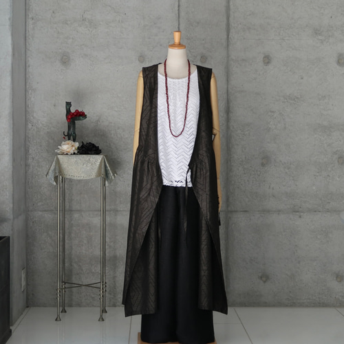 | メーカー | 着物 リメイク 大島紬 カシュクール ジレ マキシ ロング ベスト 着物 |