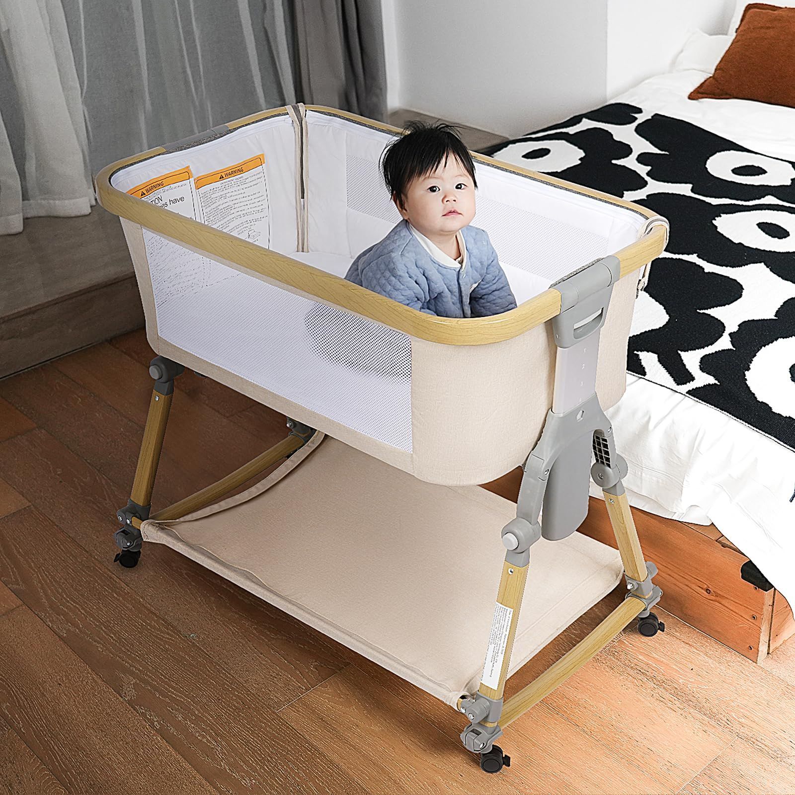 2024年最新型★カーキ(ベージュ)hzdmj ベビーベッド 移動式 HZDMJ ベビーベッド 2024年最新型☆カーキ(ベージュ)hzdmj ベビー