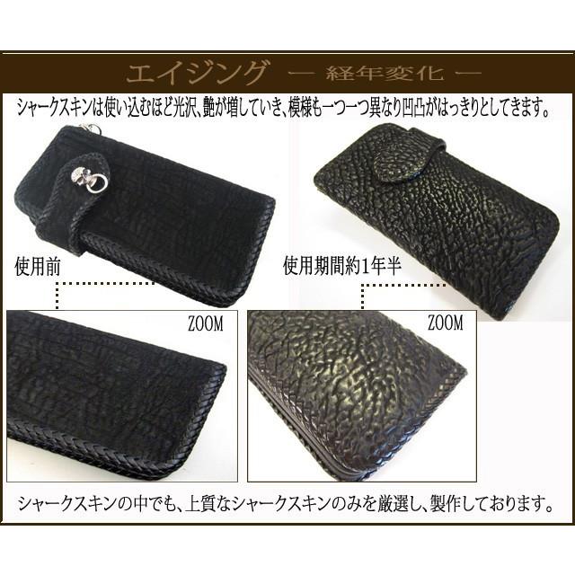 | 商品の特徴 | ラウンドファスナー サメ革 シャークスキン 財布 メンズ レディース。鮫 サメ シャーク メンズ 長財布 黒 ブラック 新品 ラウンドファスナー。ラウンドファスナー サメ革 シャークスキン 財布 メンズ レディース。お届けの実物を撮影しております。 画像をよくご覧のうえ、ご購入ください。【ご紹介】ヨシキリザメ(英名:ブルーシャーク)を使った長財布です。サメは養殖できないので、大手メーカーが手を出しずらい素材です。また、特殊な加工を要するため、取り扱う工房も少なく、知名度が高いとは言えません。しかし、サメ革はかつて武士の鎧兜にも使われていたほど、高い耐久性と耐水性を備えており、財布の素材として非常に優れています。質感はザラザラしていますが、使い込んでいくとツヤが出ます。見た目以上に手触りの経年変化が楽しめます。他の財布にはない独自の存在感で、当店が自信を持ってお勧めする皮革となっております。【色味】濃紺のサメを黒に染色したものです。長期間使っていくことで徐々に地肌の色味(濃紺)が強くなります。三年ほど使っていくと「青みがかった黒」という独特のエイジングを見せます。内装のワインレッドとのコントラストも抜群です。【素材感】サメの繊維は水分に強く、緻密で堅牢。「鮫肌」と言われる通り手触りはハードです。2年ほど使い込むと、徐々に光沢が出始め滑らかになってきます。【収納】内装は牛革ですので、柔軟性があります。使いはじめはカード収納がきつく感じるかもしれませんが徐々に馴染んでくるので、時間をかけて使い込んでください。ギャルソン(男性給仕)用に設計されており、21枚ものカード類が収納できます。ガバッと開くフルオープンタイプですので、スマートに支払いを済ませられます。【ファスナー】ステンレス製のYKKファスナーです。サメ革同様に水気に強く、長期間使っていく財布にぴったりです。【素材】・ヨシキリザメ・牛革・ナイロン・YKKファスナー【収納】・カード入れ×21・札入れ×2・フリー×3・小銭入れ×1【サイズ】・20cm×10cm×2.8cm【送料無料】・メール便にてポスト投函となります。【その他】・革製品は天然素材ですので、1つ1つ表情が異なります。当店では 実際にお届けする品 を撮影しております。・発送ミス防止のため、画像に写り込んでいる番号札を財布の中に入れたままお届けします。田中革具。サメ革 L字ファスナー 長財布 – atelier-shark。Louis Vuitton ルイヴィトン エクリプス ホリゾンタル 新品同様。極美品!LOEWEロエベ長財布 黒。希少 プラダ 長財布 オーガナイザー スカル 三角ロゴ ナイロン ブラック 黒。クロムハーツ REC F ZIP セメタリークロスウォレット 財布。美品 フェンディ 長財布 バグズアイ モンスター ラウンドファスナー 黒。ルイヴィトン【最高級美品】モノグラム エクリプス ジッピーウォレット。【超美品】ルイヴィトン ブラザNM タイガラマ コバルト ブルー 二つ折り長財布。LOUIS VUITTON ルイヴィトン 財布 エピレザー。新品 COACH コーチ メンズ 長財布 シグネチャー ブラウン。LOUIS VUITTON ジッピーウォレットタイガレザー。ルイヴィトン 長財布 ポルトフォイユブラザ M61697 モノグラムエクリプス。ルイヴィトン モノグラム ジッピーオーガナイザー M62581。✨美品✨ ルイヴィトン ポルトフォイユ ブラザ モノグラム エクリプス 財布。【最高峰美品】ルイヴィトン エピ ジッピーウォレット 長財布 新型 ノワール。【美品】BVLGARI ブルガリ 財布 ラウンドファスナー。ルイヴィトン ポルトフォイユサラ 長財布 ダミエ エヌべ ブラウン 10カード。【未使用/ギャランティカード付き】クリスチャンディオール 長財布 黒 CDロゴ。極美✨プラダ 長財布 ラウンドファスナー シボ革 バイカラー 黒 ネイビー。■新品 送料込み■本パイソン革 グレージング加工 日本製 無双 ロングウォレット。美品✨RFID ボッテガヴェネタ イントレチャート 長財布 ラウンドファスナー紺。⭐️ 極美品 ゴヤール マティニョン ラウンドファスナー ジップ GM 長財布。✨超人気✨ディオール 長財布 オブリーク ギャラクシー ロゴ 金具 レザー。Louis Vuitton モノグラム 長財布。ルイヴィトン モノグラム エクリプス ヴェルティカル 長財布 M43。ルイヴィトン M62295 長財布 小銭入れ 付属品完備 | ||