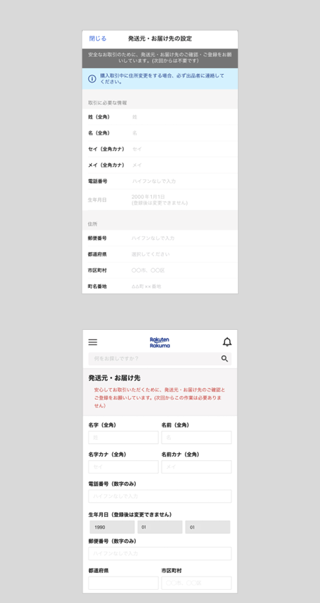 | メーカー | 住所変更のため 専用出品 氏名・住所を入力する画面が表示されました |