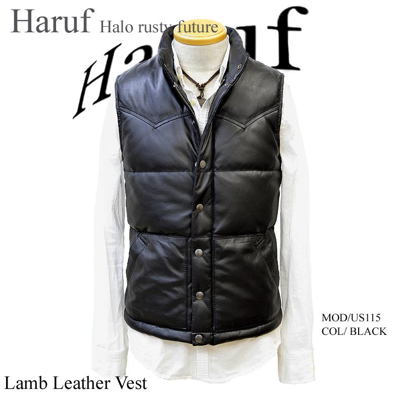 - メンズ > ジャケット・アウター > RY【極美品 wjk 肉厚レザーベスト】ラムレザー ダウンベスト ブラック Haruf(ハルフ) ダウンベスト メンズ 本革 レザーベスト ダウン