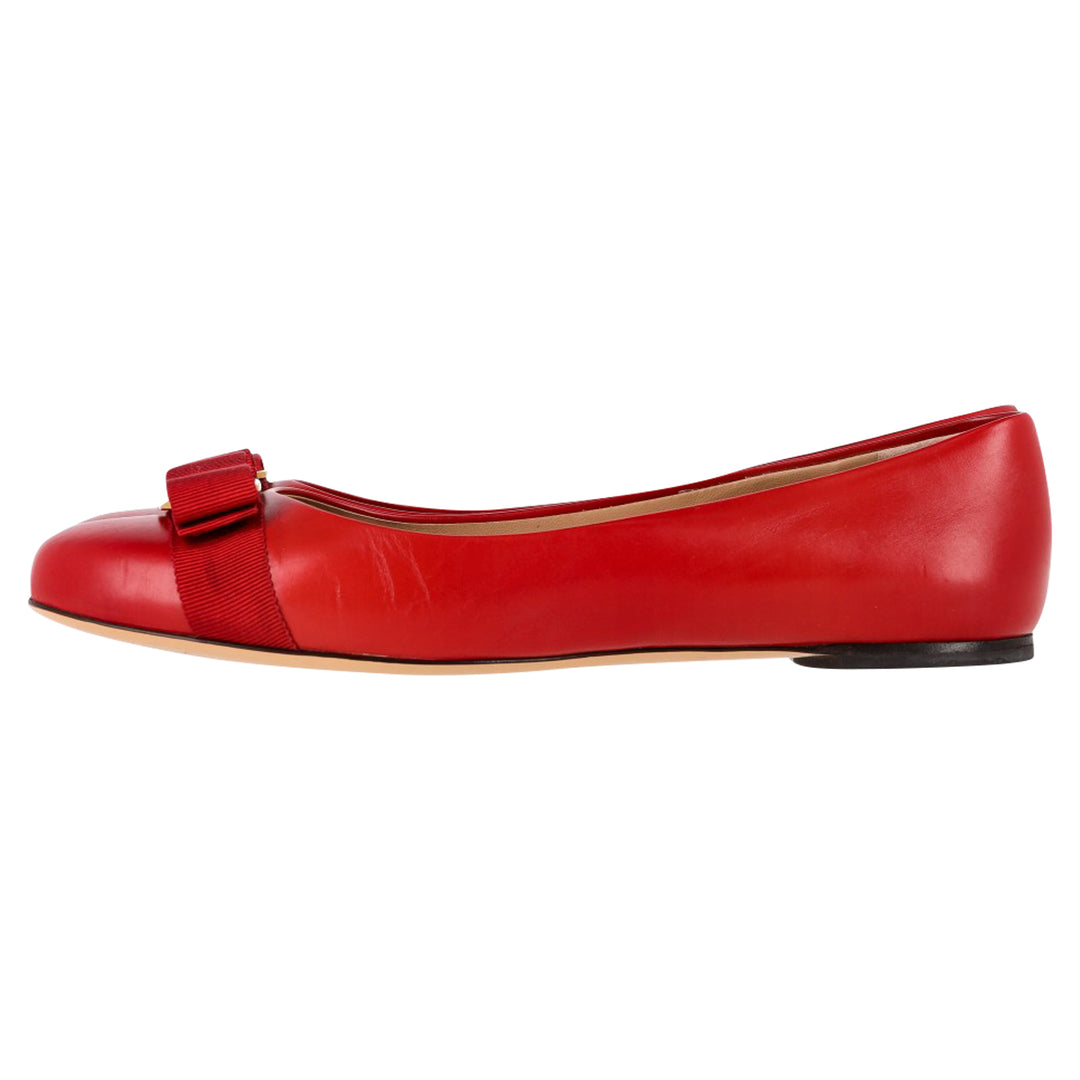 Salvatore Ferragamo レッド バレリーナフラット Salvatore Ferragamo Varina Bow Ballet Flats In Red Leather | ShopSimon