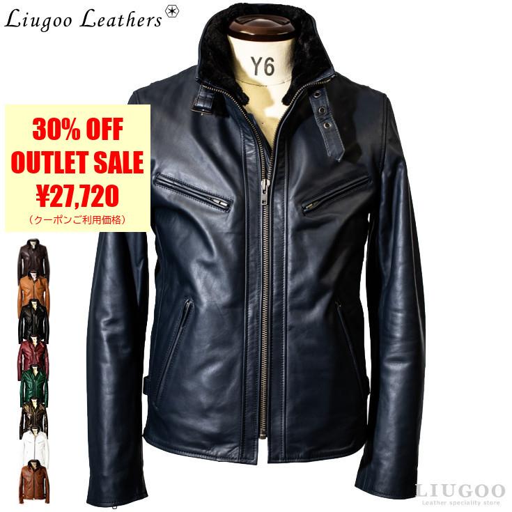 〈美品〉LIUGOO TOKYO【L】襟ボア ハイネック レザージャケット 黒 Liugoo Leathers 【50%OFFクーポン】Liugoo Leathers 本革 襟ボア