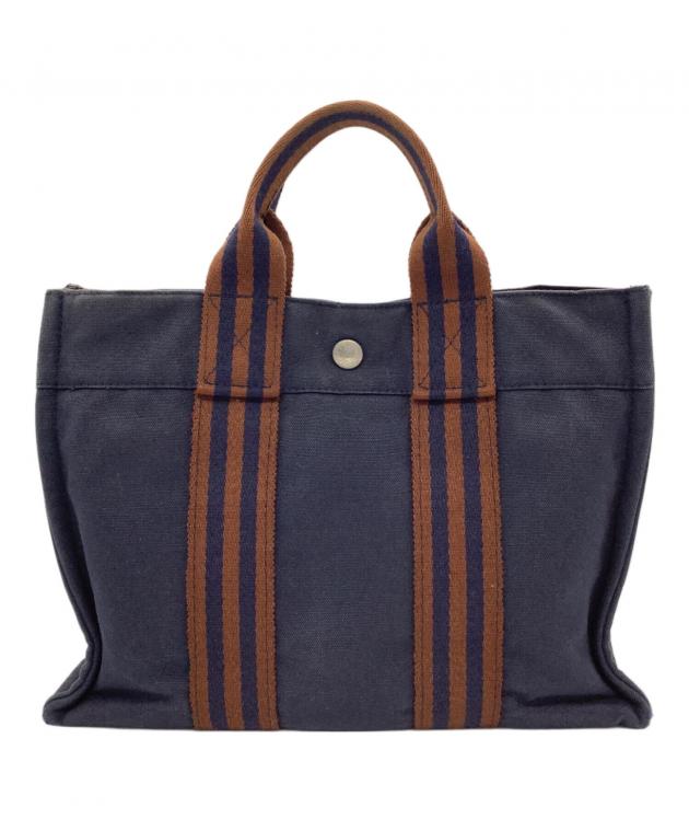 - レディース > バッグ > 美品✨HERMES エルメス フールトゥPM ハンドバッグ 手提げ ネイビー 中古・古着通販】HERMES (エルメス) フールトゥPM ネイビー×ブラウン