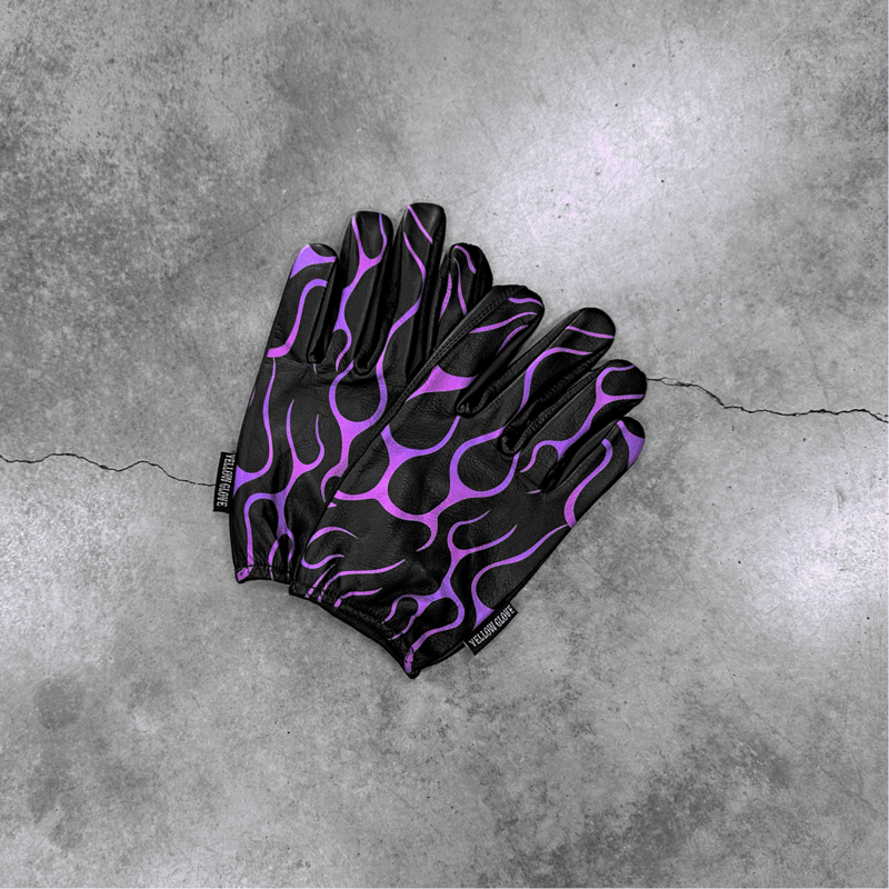 バイクウェア・装備 YELLOWGLOVE SHORT GLOVE PURPLE FLAMES Yellowglove SHORT GLOVE / PURPLE FLAMES