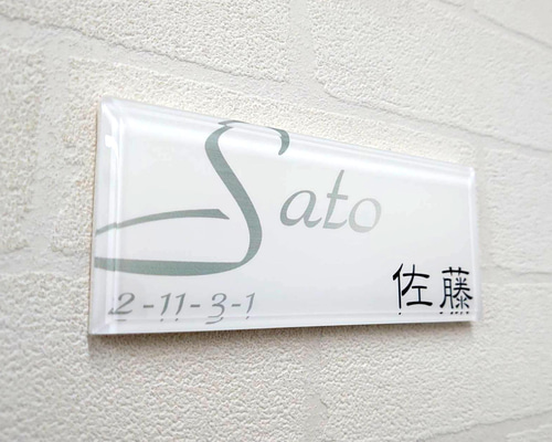 | メーカー | だいちゃん*白背景シルバーローマ字はみ出しアクリル表札*斜めカットUV印刷 |