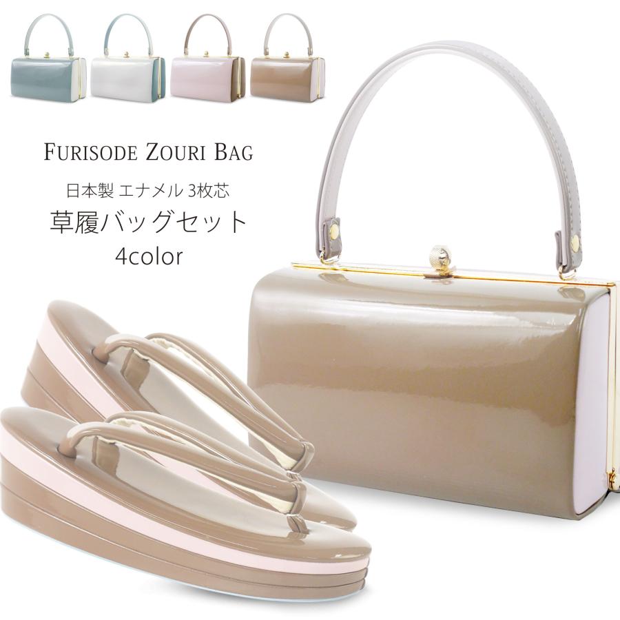 - レディース > 着物・浴衣 > 6492 振袖用 バッグセット 幅広 草履 エナメル 合革 バックセット 新品 NISHIORI 振袖用 日本製 草履バッグ セット 高級 エナメル 選べる 4色