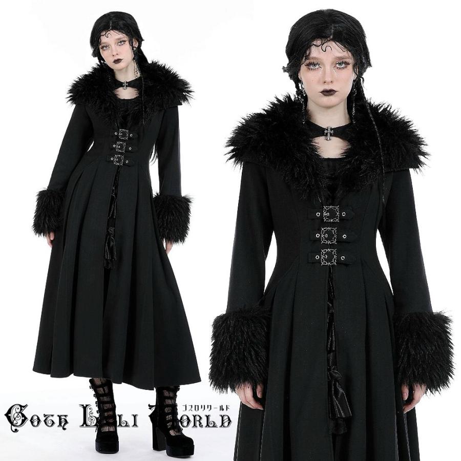 - レディース > ジャケット・アウター > イノセントワールド ロングコート ウール ロリータ ゴスロリ 黒 Mサイズ ゴスロリワールド JW256 ワイルドテイストフェイクファー ロングコート