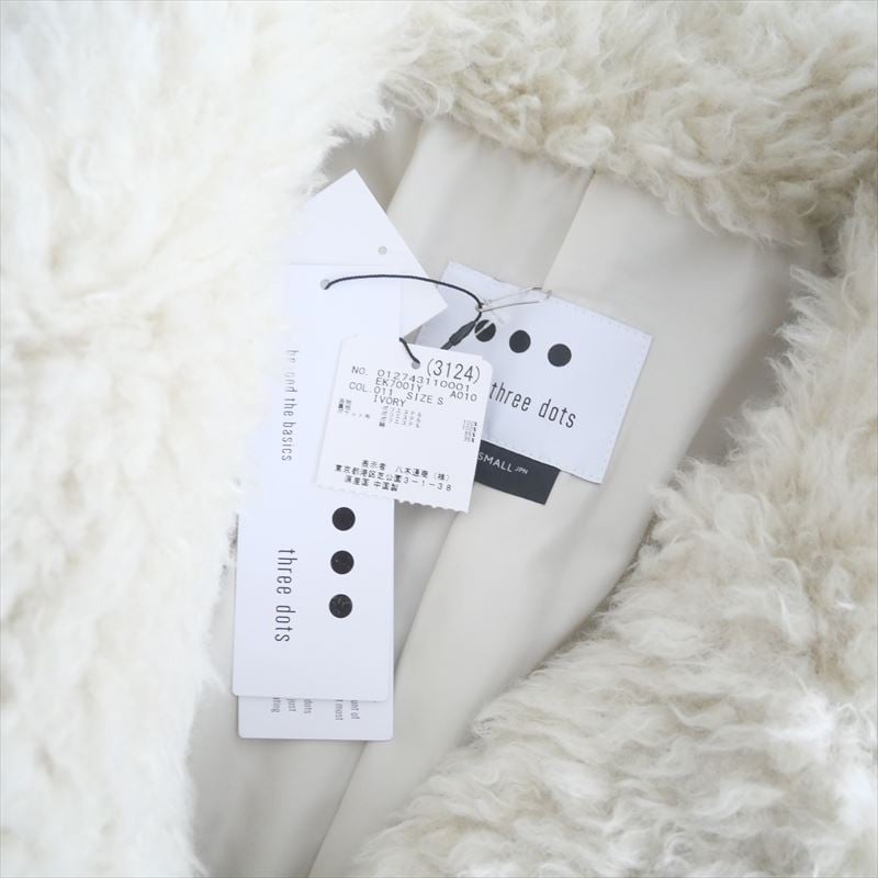 【新品未使用】☆three dots☆エコペルファー ショートコート アイボリー 2024AW今季・人気完売品 / 未使用 / three dots / エコペルファー