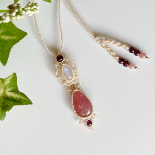 | メーカー | インカローズ・レインボームーンストーン・ガーネットのマクラメネックレス |