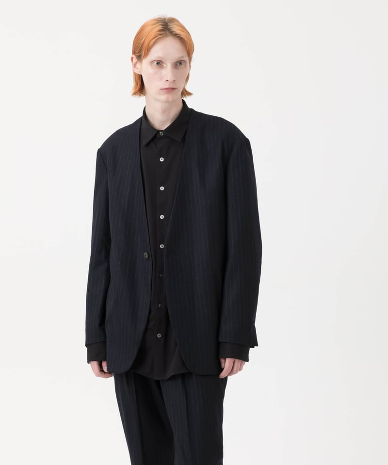 テ*ー様 MBハイエンド尾州ウール クラシックノーカラージャケット+ワイドスラッ MBハイエンド尾州ウール クラシックノーカラージャケット | MB -there