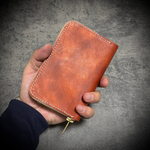 - ファッション小物 > 財布・ケース・小物入れ > 牛ヌメ革ミドルウォレット 本革を手縫いで製作したハンドメイドのオリジナルデザイン 牛ヌメ革ミドルウォレット 本革を手縫いで製作したハンドメイドの